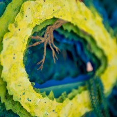 300gsm paper, foamcore, wire, gouache, ink, pumice, ground marble, mica flakes, hex flakes, oil pastels, acrylic mediums